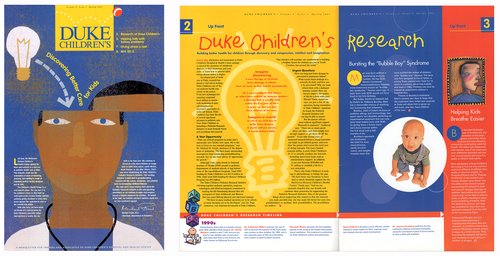 At Duke Medical Center I worked on a variety of ongoing patient education magazines and newsletters. I am currently designing a quarterly development magazine for Onslow Memorial Hospital. I've been designing UNC's Center for Behaviorial Health annual report for several years.